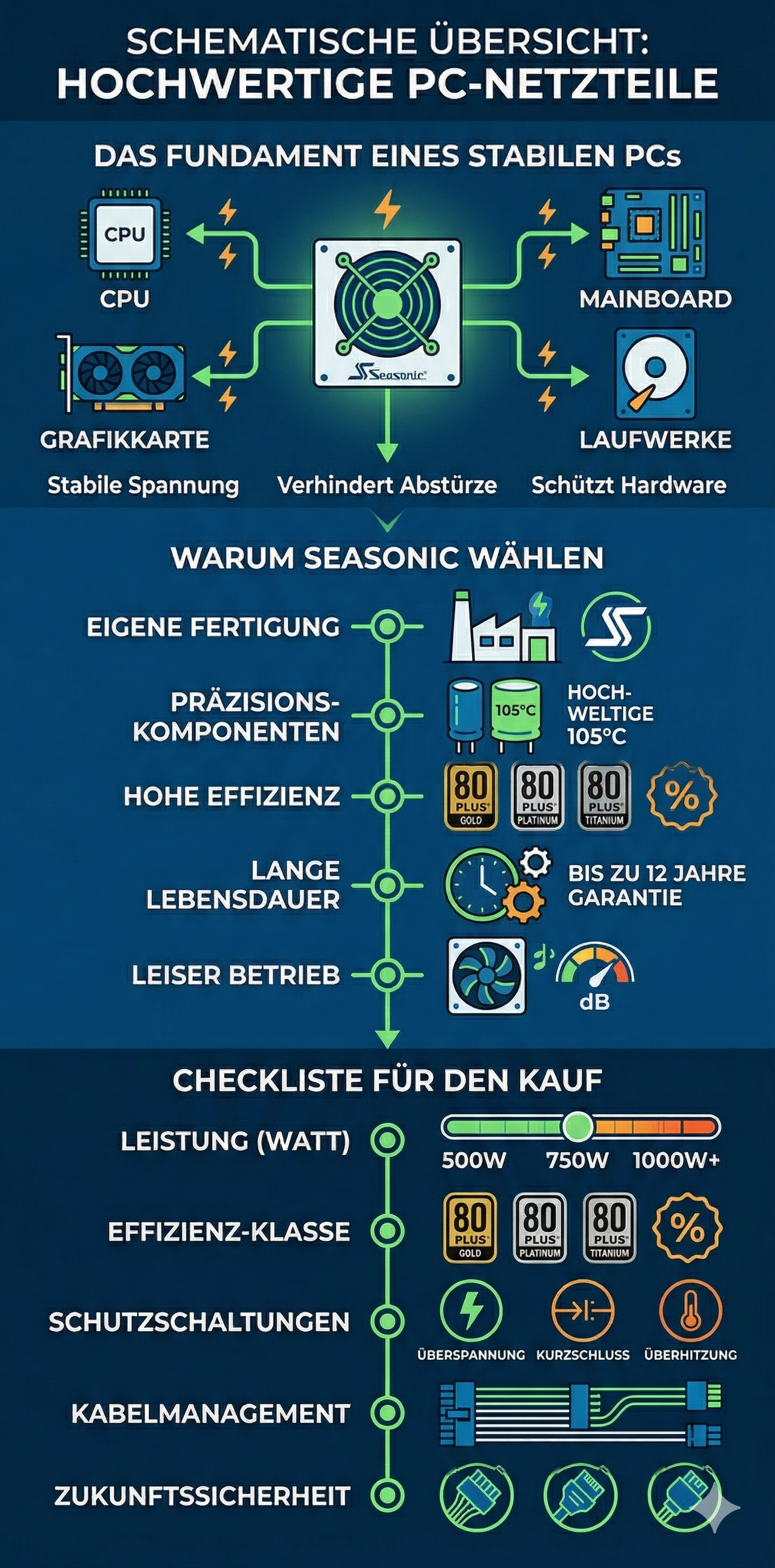 Unsere Erfahrung zeigt: Seasonic-Netzteile gehören zu den zuverlässigsten Lösungen im professionellen Einsatz.